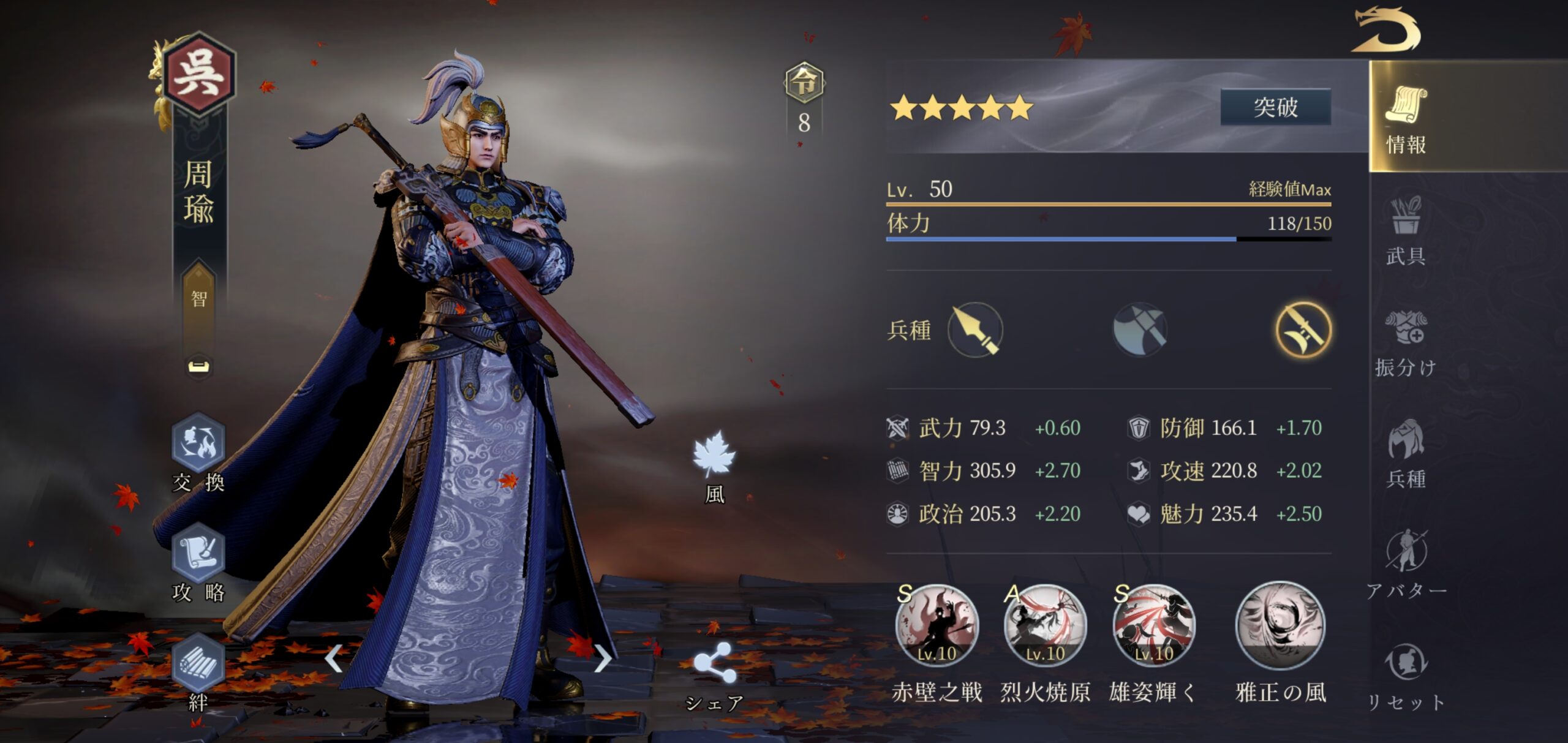• 主戦としている周瑜と陸遜がレベル50に到達する