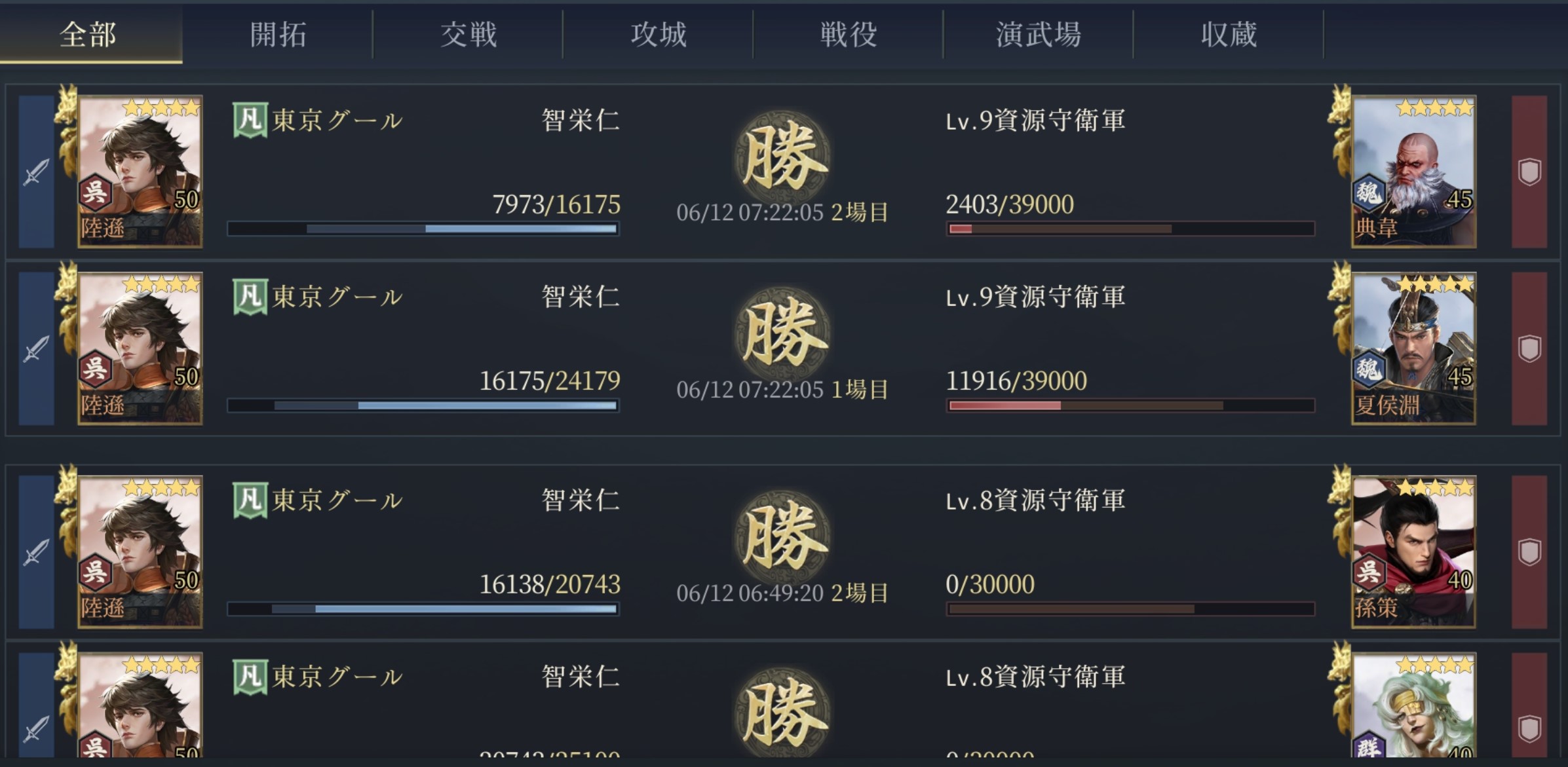 たまたま相性が良い組合せだったのか、土地レベル9を1軍団攻撃で攻略できました。しかも比較的余裕を持って行けたので、他にもチャレンジしましたが、兵数MAXでも2軍団攻撃となります。ただ、土地レベル8はほぼ1軍団攻撃で攻略できるので、勢力値が一気に伸びるようになってきました。