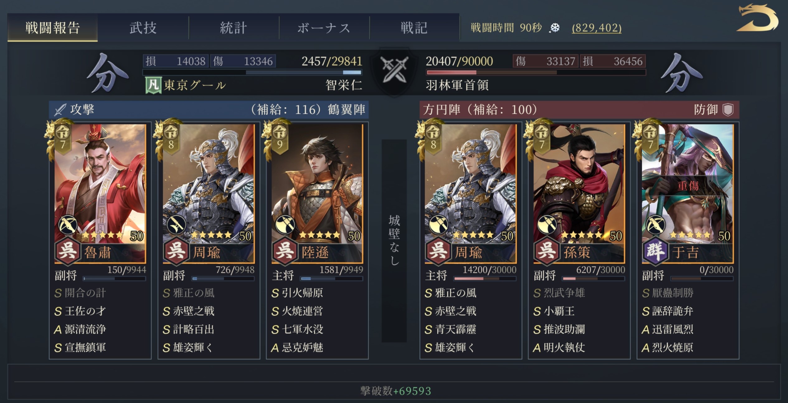 - シーズン開始のボーナスガチャで周泰、夏侯惇を獲得する