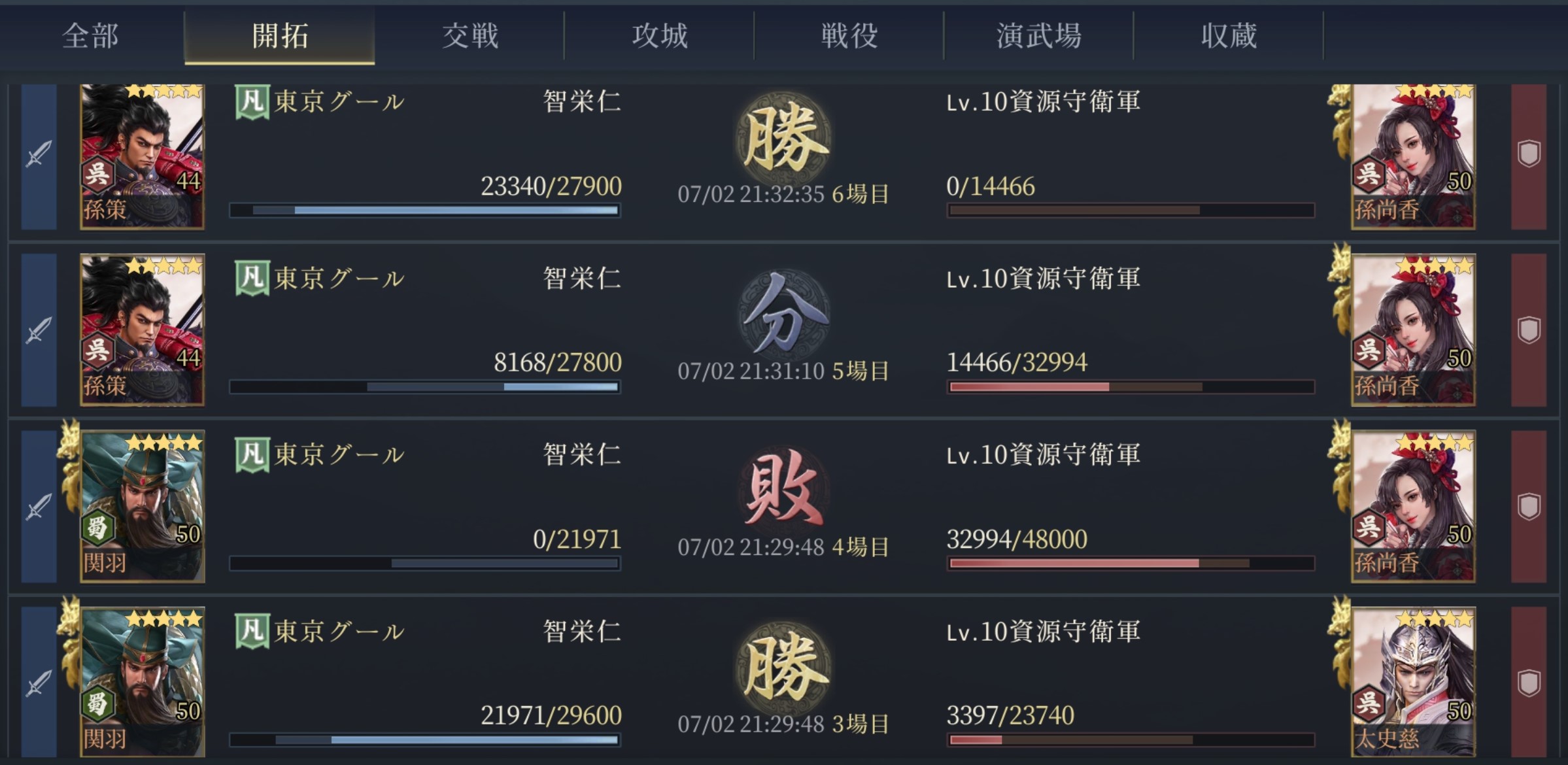 ようやく土地レベル10を攻略できました。3軍団(引分補給付き)攻撃でなんとかギリギリの攻略でした。